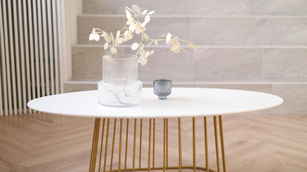 EDEUEQUE Round Modern Mid-Century Coffee Table with Glass | Stylish Living Room Center Table